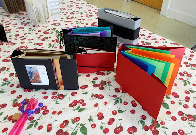 On exhibit now in the Humboldt County Library kiosk are colorful Love and Friendship themed cards, books, and structures made by North Redwoods Book Arts Guild members. Representing things we love includes a beloved dog flag book, a folded book of music, an Ed Hutchins style cut-out book of friends, tacket binding library love, our home planet card, and a sentiment by Thomas Aquinas: “The things that we love tell us what we are.”